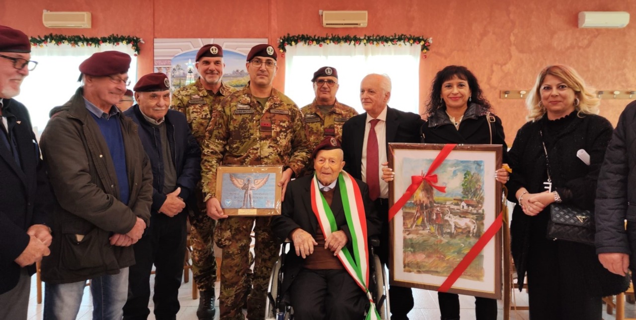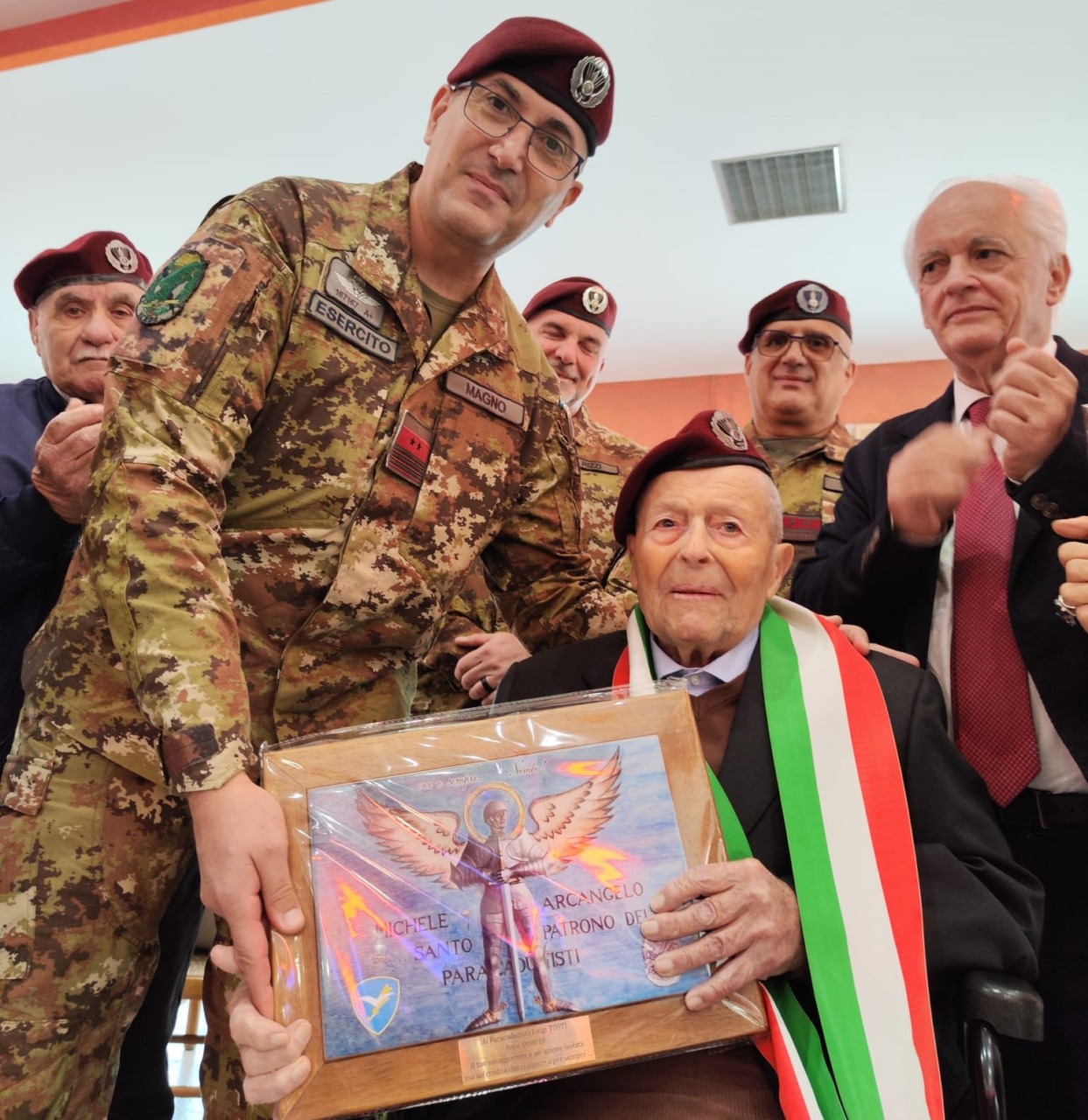 Una giornata dedicata ai ricordi e alla Storia, un momento solenne tutto per il paracadutista eroe della Seconda Guerra Mondiale: Pontinia ha celebrato Luigi “Giotto” Tosti, festeggiando con lui e la sua famiglia lo splendido traguardo dei 105 anni. Come avvenuto negli ultimi anni, il Sindaco Eligio Tombolillo ha voluto omaggiare un personaggio che rappresenta un vanto per l’intera comunità: nato a Cisterna il 22 novembre 1920 ma da decenni residente in città, partecipò alla Seconda Guerra Mondiale e in seguito ad una ferita riportata in un combattimento notturno, durante la Campagna di Nord Africa, fu assegnato al Reggimento Nembo, in Sardegna, con il quale partecipò alla battaglia di Monte Cassino.