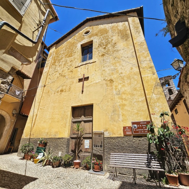 La Chiesa di San Giovanni risale al IX secolo, ed è una delle più antiche di Terracina insieme alla Cattedrale. Già nel XII – XIII secolo, quando era ancora la Chiesa di San Lorenzo, viene ricordata come una delle più importanti della Città in quanto Chiesa parrocchiale. È nel XVII secolo, quando la Chiesa viene completamente ristrutturata e riconsacrata, che assume il titolo di San Giovanni Battista ed Evangelista. L’edificio sacro è in stile tardo barocco, e conserva la parte medievale con il presbiterio, la zona absidale e il campanile.