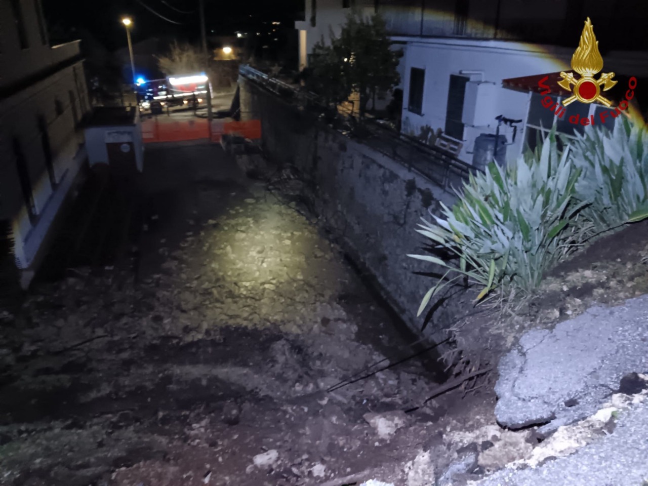 Non si registrano feriti. L’area resta interdetta fino al ripristino delle condizioni di sicurezza da parte del Comune. L’intervento si è concluso intorno alle 3:30.