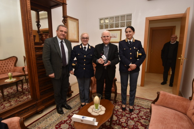 L’incontro ha rappresentato anche un momento di confronto istituzionale e l’occasione per un primo scambio di auguri in vista delle festività pasquali tra il Vescovo e il Questore, accompagnato anche dal Commissario della Polizia di Stato dr.ssa Francesca BRUNI. Nel ricevere il dono, Mons. Crociata ha dichiarato:«Ringrazio la Questura di Latina per il dono dell’olio, che in questo caso raggiunge il livello di grande valore simbolico. La prossimità della Pasqua ci invita ad unirlo all’olio che sarà benedetto nella Messa del Crisma e soprattutto ci riporta il richiamo pasquale alla resurrezione, a risorgere dalla morte del male. Che la nostra vita fiorisca con opere di giustizia e di bene. Grazie».