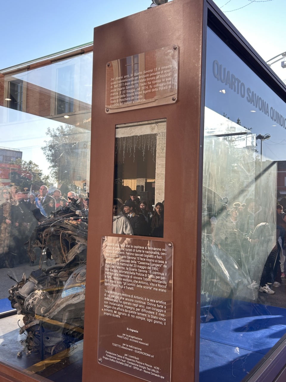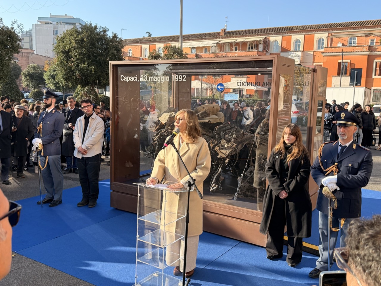 Questa mattina, in una gremita Piazza del Popolo, la città di Latina ha accolto con profonda partecipazione la teca contenente i resti della “Quarto Savona 15”, l’autovettura di scorta del giudice Giovanni Falcone, distrutta nell’attentato di Capaci del 23 maggio 1992.