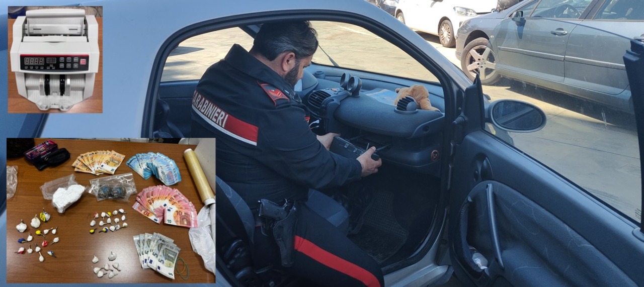 Notati segni palesi di nervosismo della coppia, i militari decidevano di approfondire il controllo effettuando una perquisizione personale e veicolare, all’esito delle quali in possesso della donna veniva rinvenuta la somma di 2.435 euro in banconote di piccolo taglio e nel veicolo veniva scoperto un vano nascosto ad apertura elettrica ricavato nell’alloggiamento dell’airbag del passeggero del veicolo, all’interno del quale erano occultati ben 37 involucri termosaldati risultati contenere circa 54 grammi di cocaina, il tutto sottoposto a sequestro unitamente al veicolo e a un’agenda riportante nomi e cifre verosimilmente riconducibili alla contabilità dell’attività illecita.