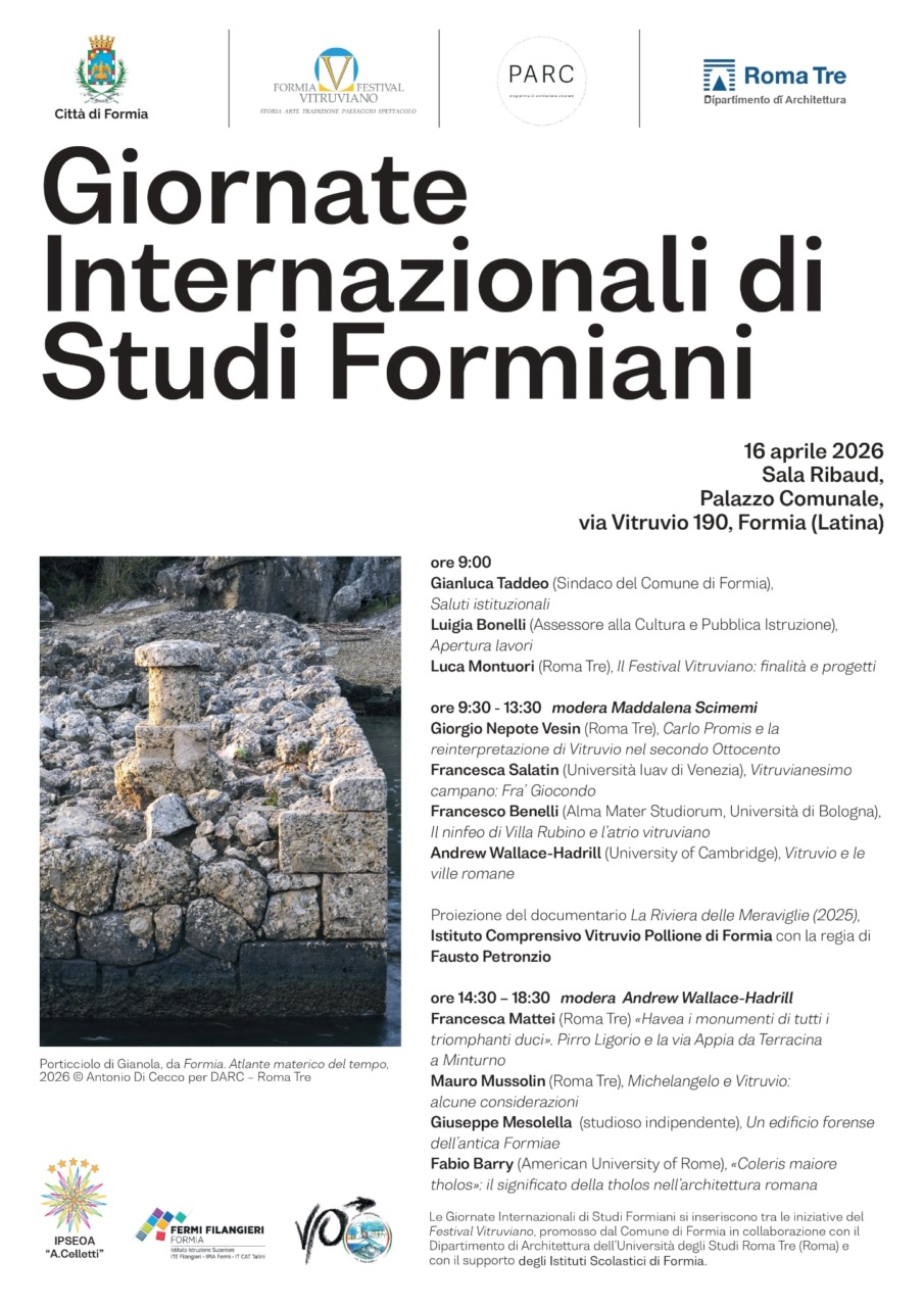 L’iniziativa si inserisce nell’ambito delle attività del Festival Vitruviano, progetto di Terza Missione ideato da Luca Montuori, responsabile scientifico per il DARC (Dipartimento di Architettura) dell’Università degli Studi Roma Tre, in convenzione con il Comune di Formia. La giornata di studi, curata da Maddalena Scimemi con il supporto dell’Assessorato alla Cultura e Pubblica Istruzione, nasce con l’obiettivo di valorizzare Formia – antica, moderna e contemporanea – come luogo di rilevanza per la storia dell’architettura.