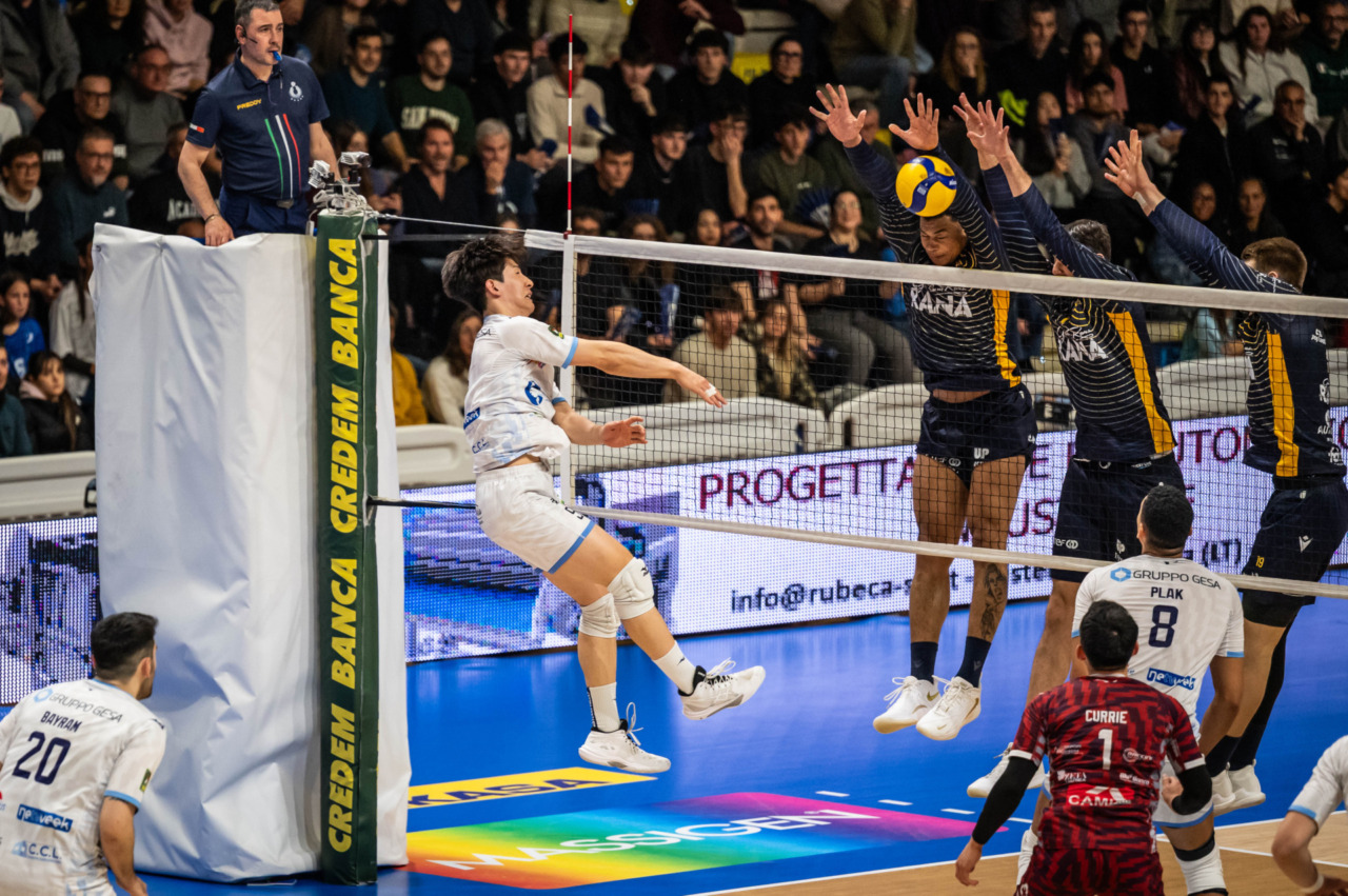 Equilibrio nel primo set. Verona provava a scappare per due volte, ma i pontini non mollavano cedendo però 25-22. Nel secondo set i padroni di casa subivano la formazione veronese che sotto nel punteggio sul 14-13, dava vita ad un filotto di punti che la portava a chiudere sul 25-18. Capitan Bayram e compagni accarezzavano l’idea di poter allungare la sfida nella terza frazione. Momento positivo per Yuga Tarumi. 14-10 e poi 19-16. Ma Verona si rimetteva in carreggiata. Mozic e Darlan Ferreira erano irrefrenabili ben orchestrati da Christanson e la rimonta era servita. 25-23.