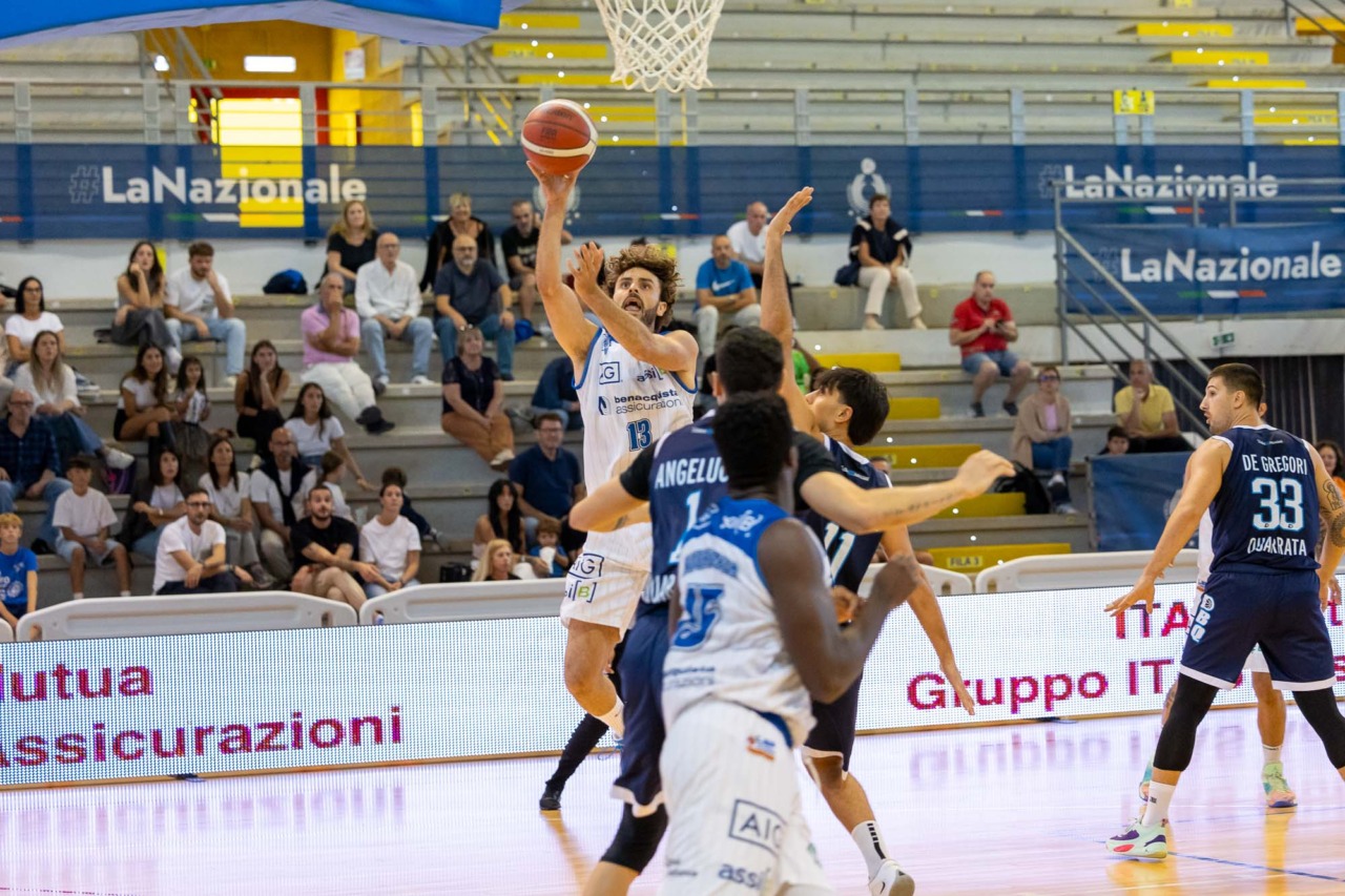 Esordio positivo tra le mura amiche per la Benacquista Assicurazioni Latina Basket, che supera il Consorzio Leonardo Dany Quarrata 84-77 in occasione della seconda giornata del campionato Serie B Nazionale. Sfida equilibrata nei primi due quarti. I nerazzurri trovavano buone soluzioni offensive con Di Emidio, Nwohuocha, Chiti e Bakovic, ma Quarrata rispondeva colpo su colpo. Nel secondo periodo i pontini partivano forte, ma gli ospiti reagivano con un break di 13-0, ribaltando il punteggio (30-38). I nerazzurri si aggrappavano ai tiri di Chiti e alla solidità difensiva andando all’intervello lungo sul 40 a 39 per Quarrata.