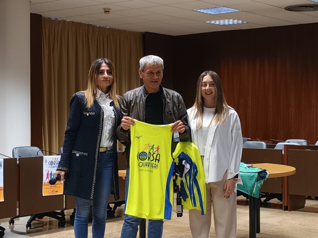 Lungo questo percorso si sfideranno sei squadre in rappresentanza dei quartieri: Mondo Disabili Future, Le Castella, Franceschetti, Atletica Cisterna Vecchia, Guglielmo Marconi e Prato Cesarino. Questo pomeriggio presso l’aula consiliare del Comune l’assessore allo sport Gaetana Capasso ha consegnato agli atleti le maglie da indossare nella competizione di domenica.